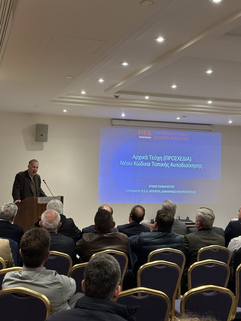 Στη συνέχεια ο Πρόεδρος της Π.Ε.Δ Ηπείρου ανέλυσε τα βασικά χαρακτηριστικά του νέου Κώδικα που κατατέθηκε από το Υπουργείο Εσωτερικών και βρίσκεται σε επεξεργασία από την αυτοδιοίκηση, επισημαίνοντας τόσο τις καινοτομίες όσο και τα σημεία που δημιουργούν ανησυχία για τη λειτουργία των δήμων, τονίζοντας ότι η κωδικοποίηση της νομοθεσίας για την αυτοδιοίκηση αποτελεί θετική εξέλιξη, καθώς αποσαφηνίζει νομικές διατάξεις, καταργεί ανενεργές διατάξεις και εισάγει νέες ρυθμίσεις με οργανωμένο τρόπο. Ωστόσο, σημείωσε προβληματισμούς για ορισμένες διατάξεις, όπως η καθιέρωση της εναλλακτικής ψήφου και η κατάργηση του δεύτερου γύρου των δημοτικών εκλογών καθώς και ζητήματα στη διαχείριση αρμοδιοτήτων και στην υποστήριξη των δημοτικών κοινοτήτων.