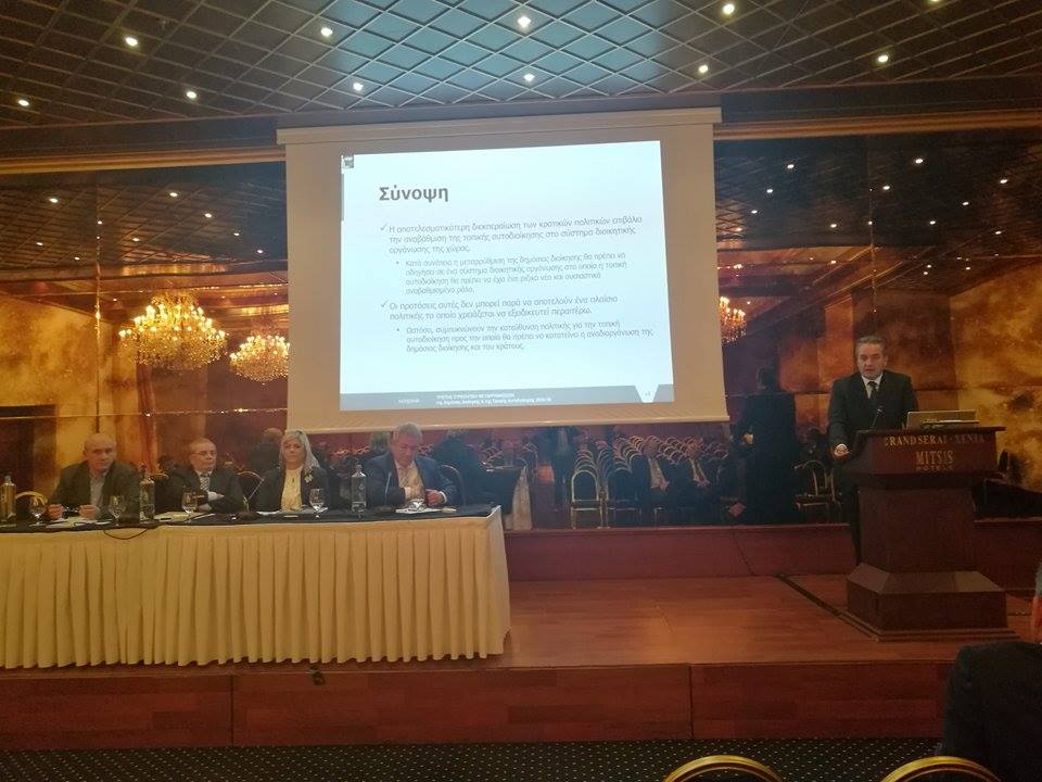 Παρουσιάζοντας τις προτάσεις του Διοικητικού Συμβουλίου, για την Μεταρρύθμιση, αναφέρθηκε στον ΚΑΛΛΙΚΡΑΤΗ, λέγοντας ότι ήταν κατάκτηση όλης της Αυτοδιοίκησης, υλοποιήθηκε με επάρκεια αλλά δεν στηρίχθηκε όσο έπρεπε από το Κεντρικό Κράτος. Επομένως, η όποια νέα Μεταρρύθμιση, πρέπει να εμπεριέχει στην πράξη, αποκέντρωση αρμοδιοτήτων και οικονομικών πόρων από την Κεντρική Κυβέρνηση.