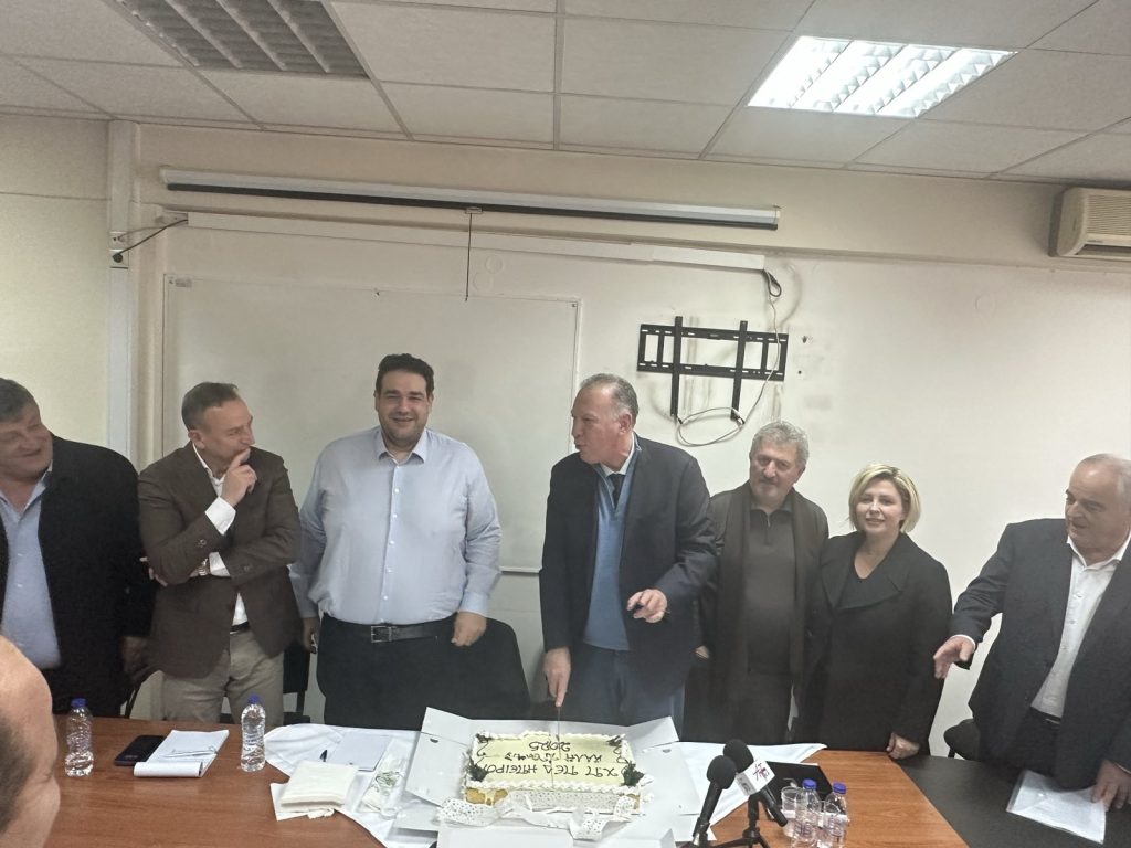 Ακολούθησε η κοπή της πρωτοχρονιάτικης πίτας, παρουσία του Υπουργού και ανταλλαγή ευχών για μια νέα δυναμική και παραγωγική χρονιά για την Τοπική Αυτοδιοίκηση.